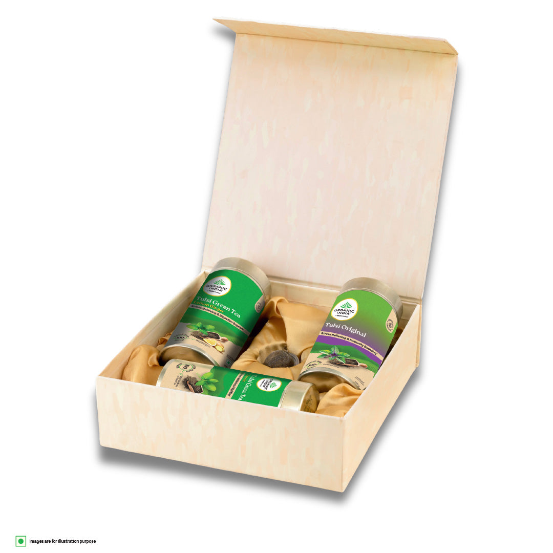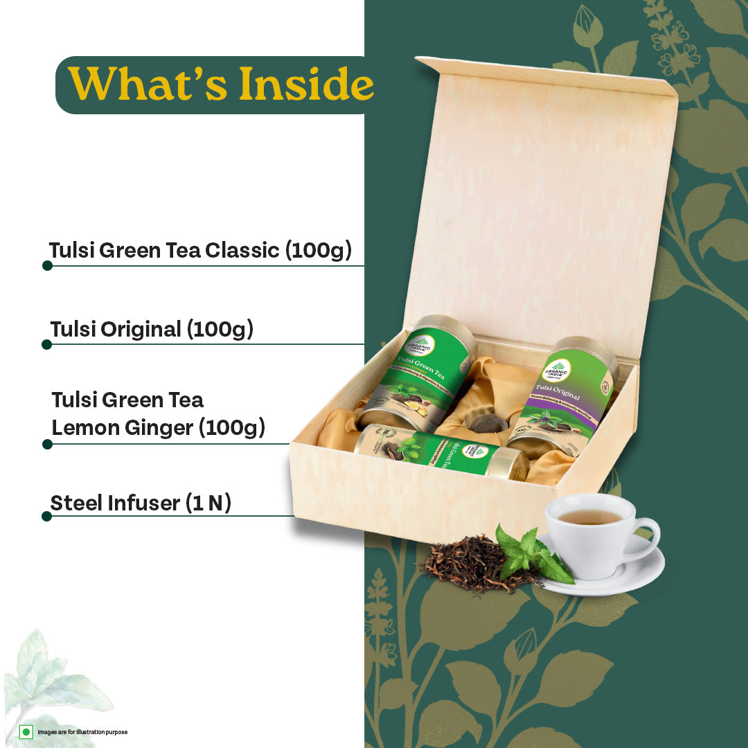 Elevate your tea-drinking experience with our exclusive Tulsi Green Tea – Exotic Brew Gift Box Set. This thoughtfully curated collection of three exquisite Tulsi tea varieties will delight the senses, soothe the soul, and make for a perfect gift for tea enthusiasts and wellness aficionados.