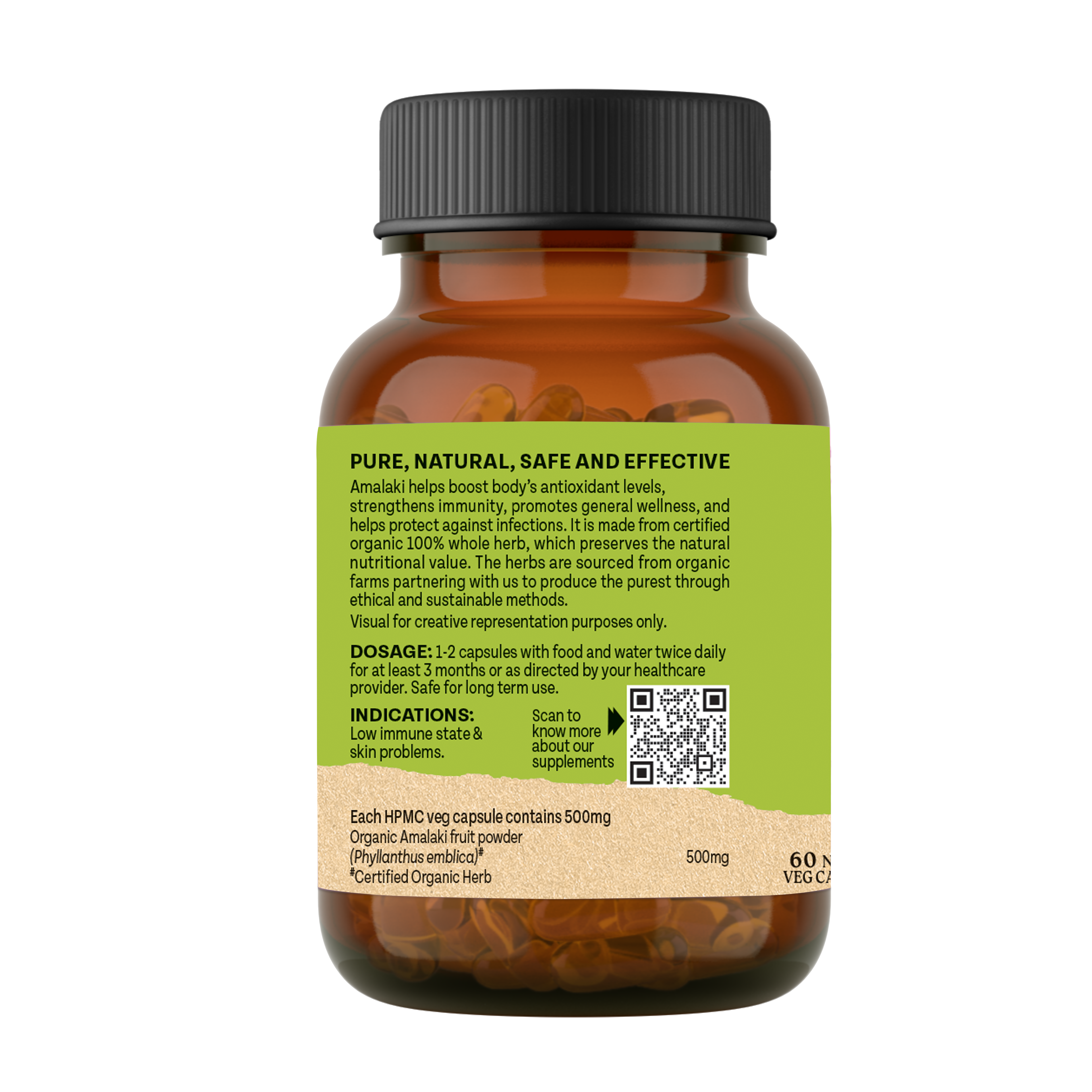 Organic India Amalaki Capsules deliver the natural power of desi, non-grafted Amla to help boost immunity and provide antioxidant support. Made from 100% whole herb Amla, these certified organic, plant-based capsules are sun-dried and contain no fillers or chemicals, a daily health boost rooted in Ayurveda.