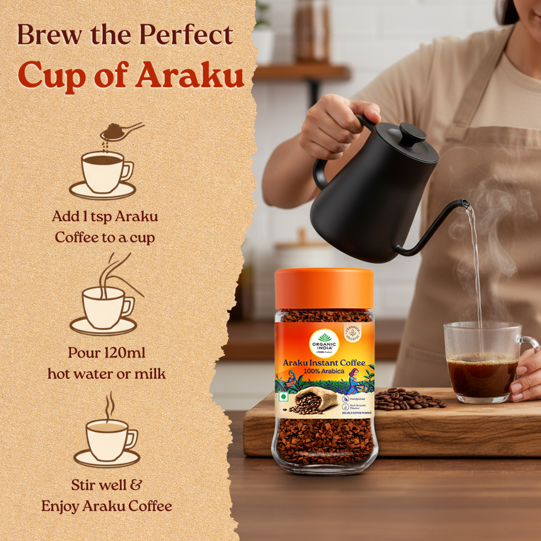 1. Add 1-2 tsps of Araku Instant Coffee to a mug