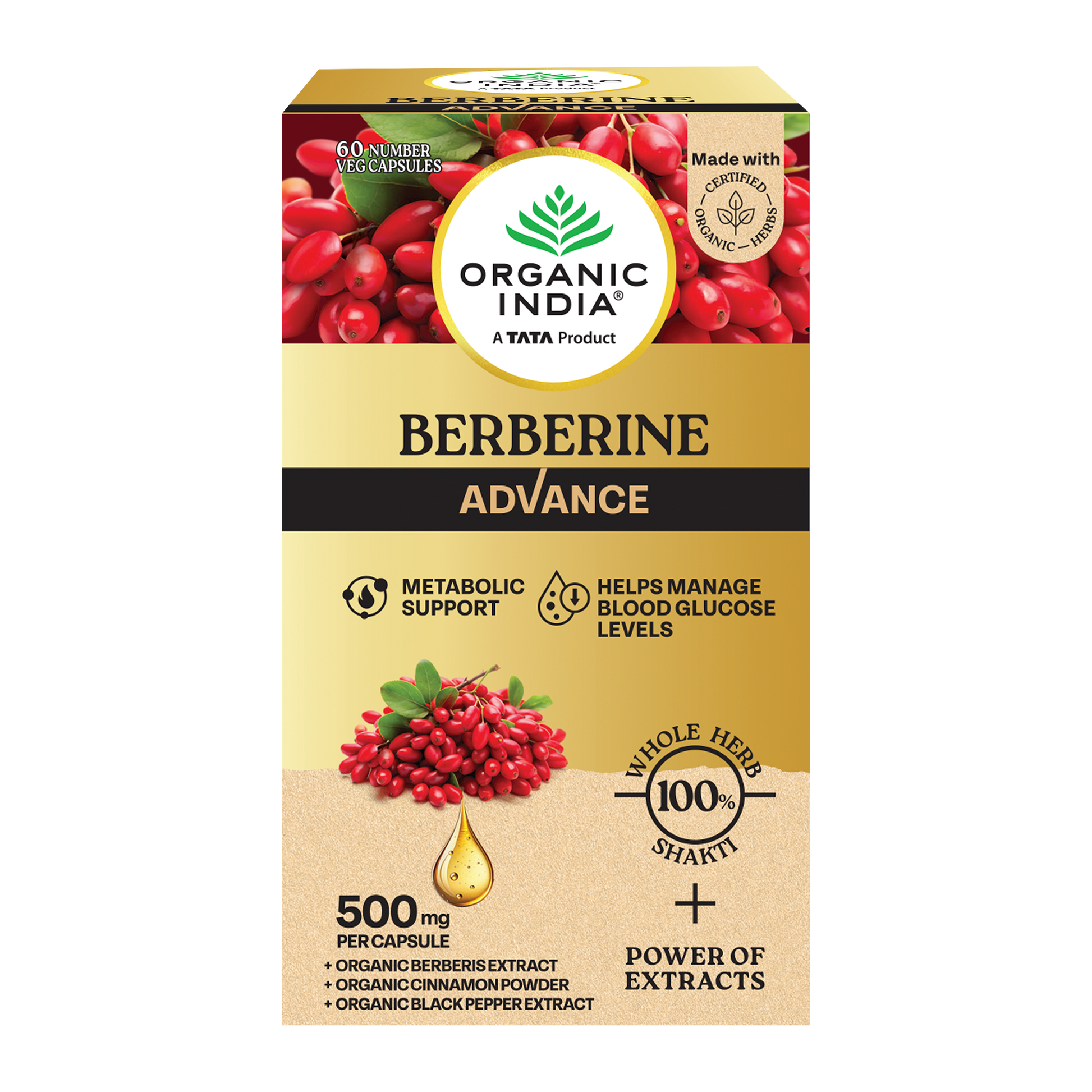 100% Whole Herb Shakti - now with the added power of extracts of Berberine (30%), Organic Cinnamon, and Black Pepper for enhanced absorption. Helps support metabolism, balance blood glucose levels, and promote overall wellness. The wisdom of Ayurveda, elevated by science to unlock the power of nature's purity.
