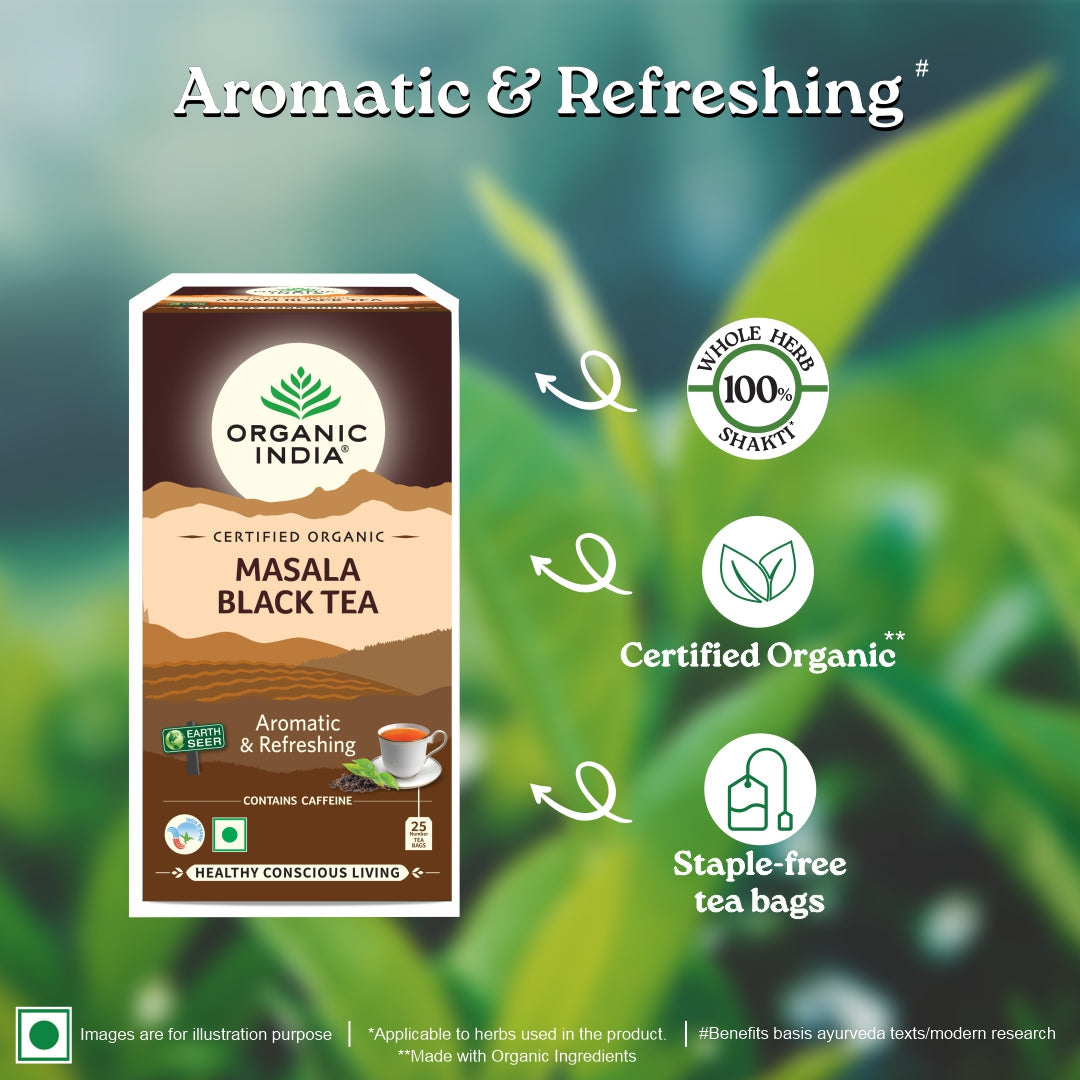 Organic India’s Black Tea range is a celebration of the majestic tea gardens of India. Only the finest tea leaves, herbs, and botanicals are meticulously handpicked from tea gardens and organic farms across India to ensure a truly exceptional tea-drinking experience.