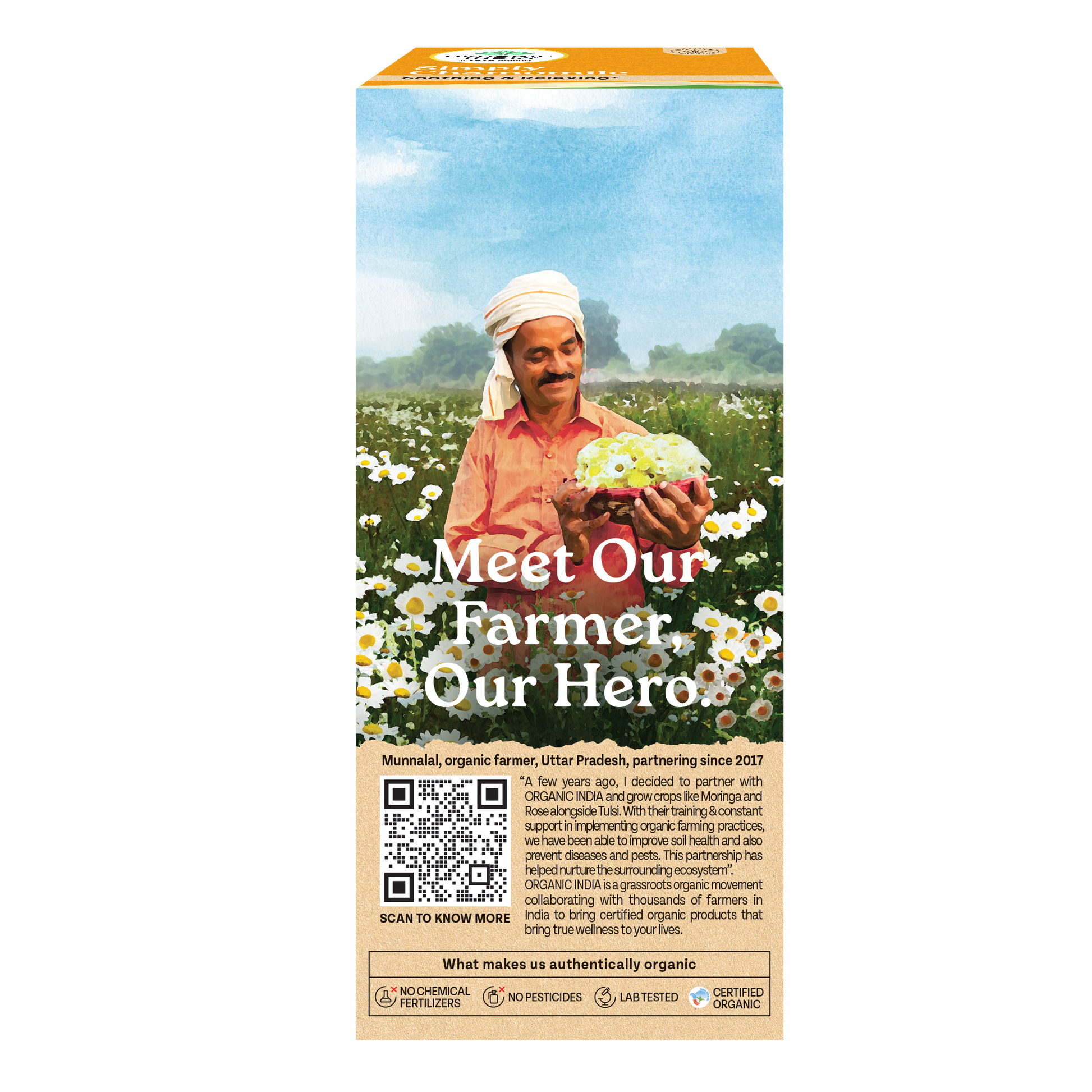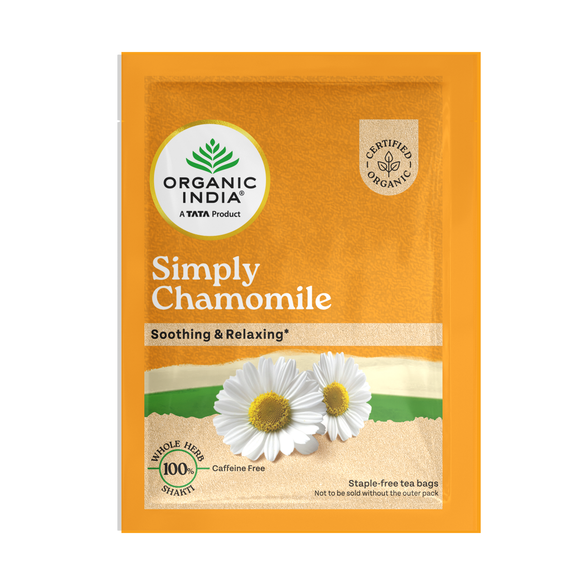 A soothing herb, Chamomile is relished for its fragrant aroma, earthy flavour, and subtle sweetness. But more importantly, Chamomile Tea is known for its ability to reduce stress and anxiety. ORGANIC INDIA Simply Chamomile’s calming taste notes make it a perfect beverage any time of the day, especially before bedtime. Brew a cup, and immerse yourself in a field of Chamomile flowers.