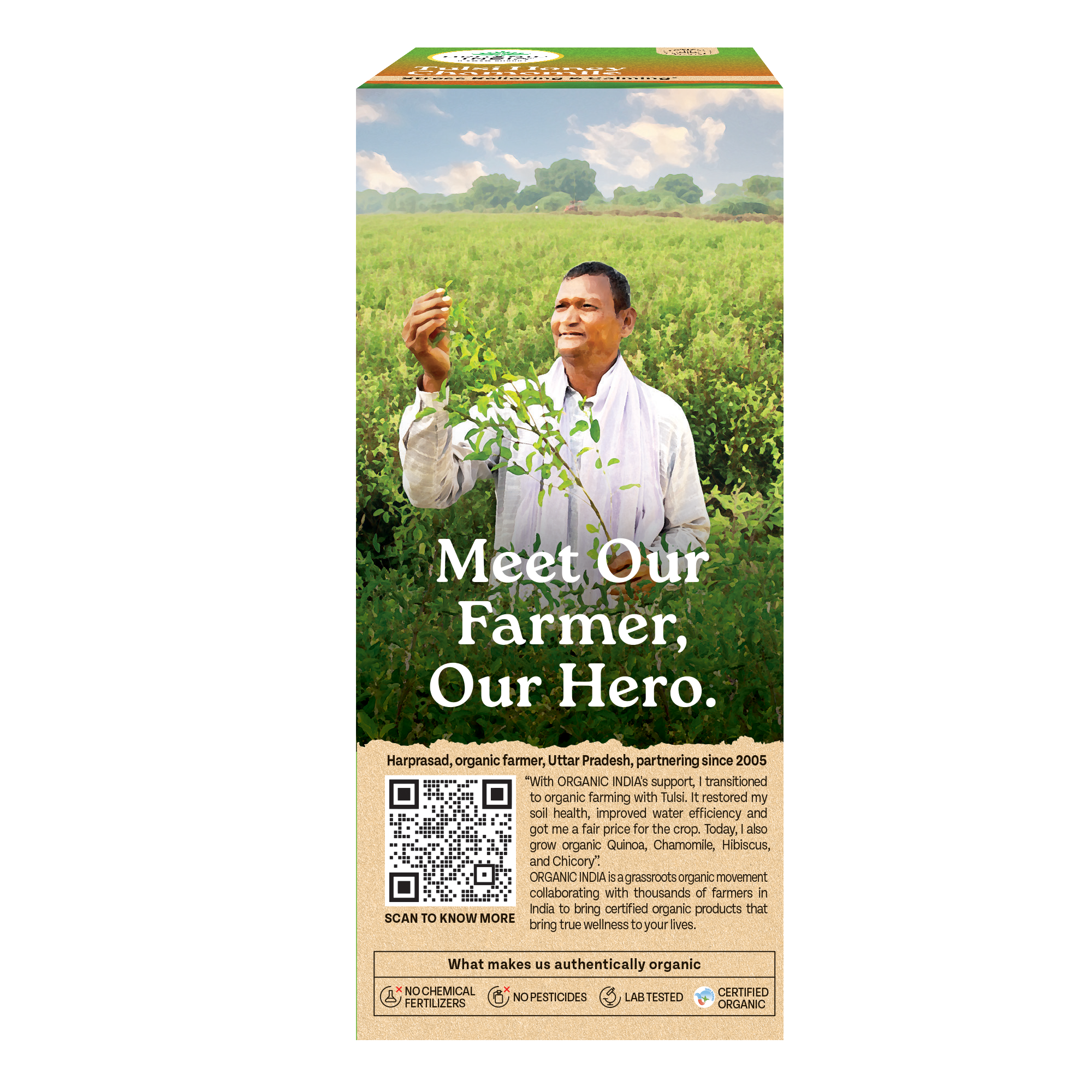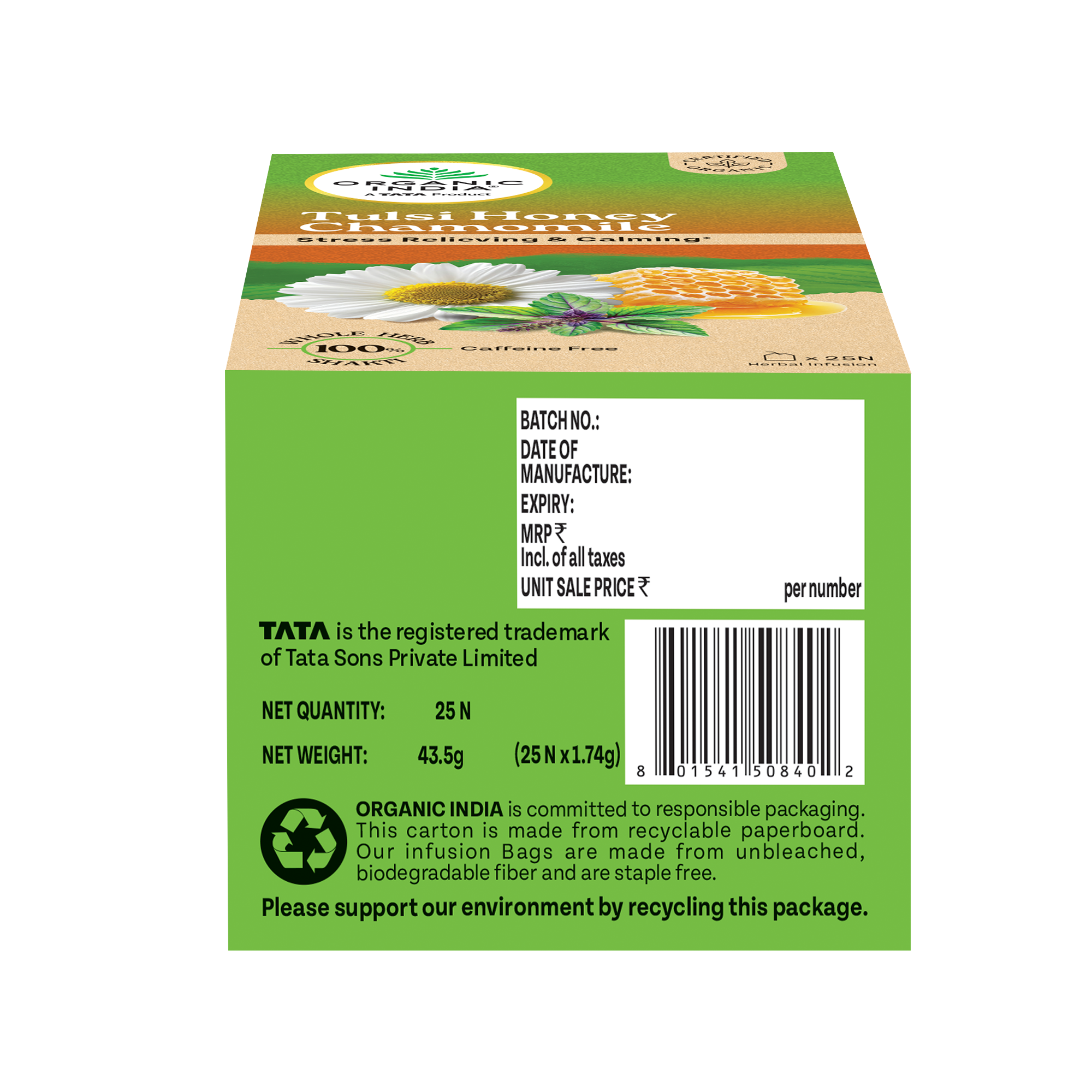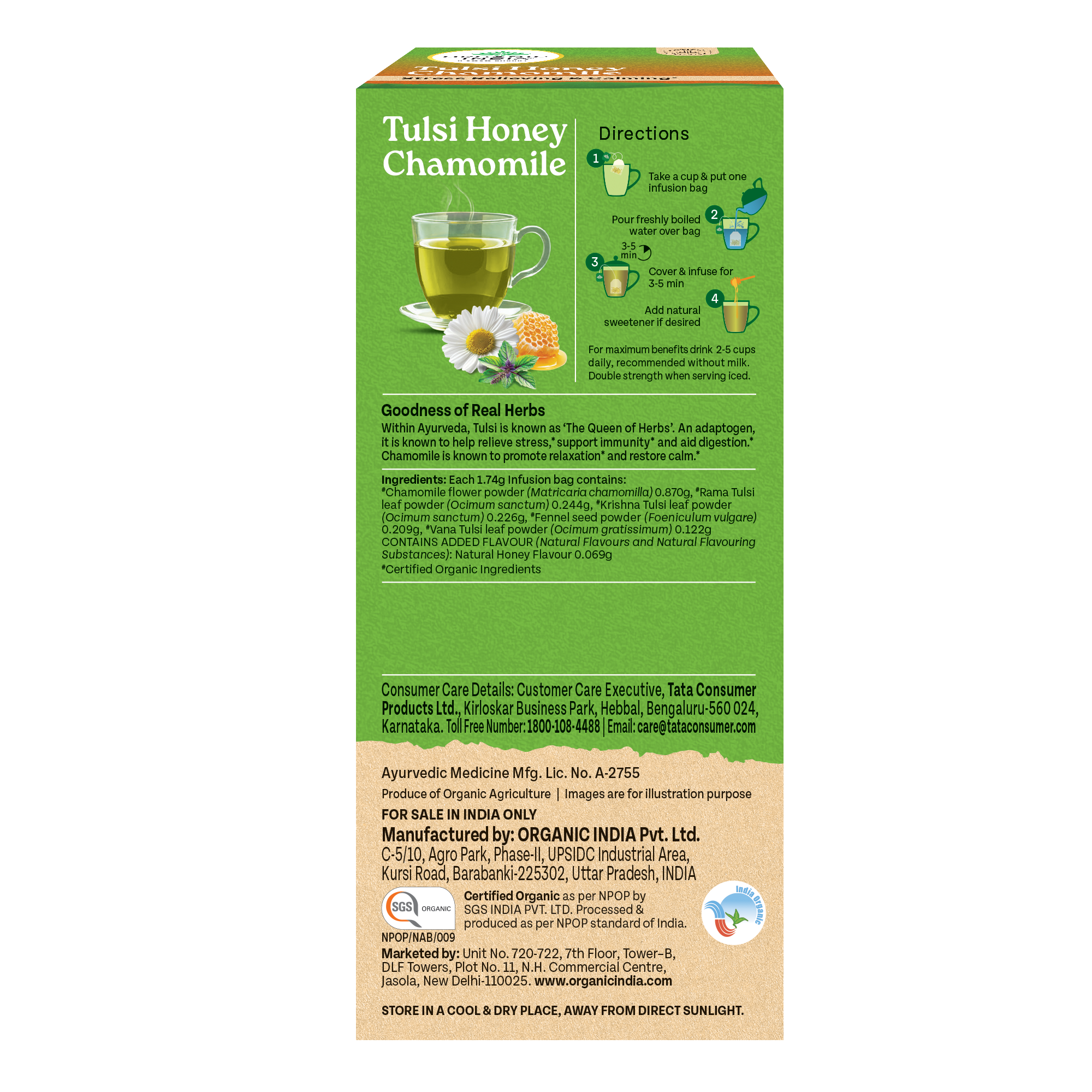 A perfect combination of Tulsi, honey and chamomile, this Tulsi Honey Chamomile is made for moments of tranquillity. This lovely tea with its soothing sweet aroma of Chamomile flowers blended with peppery notes of Tulsi is perfect to help you wind down and relax after a busy day.