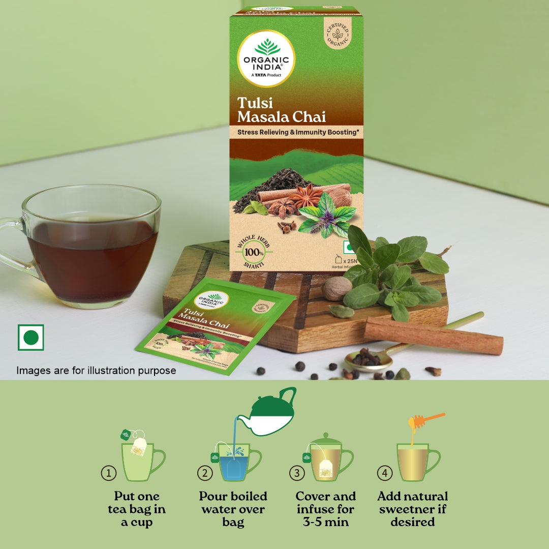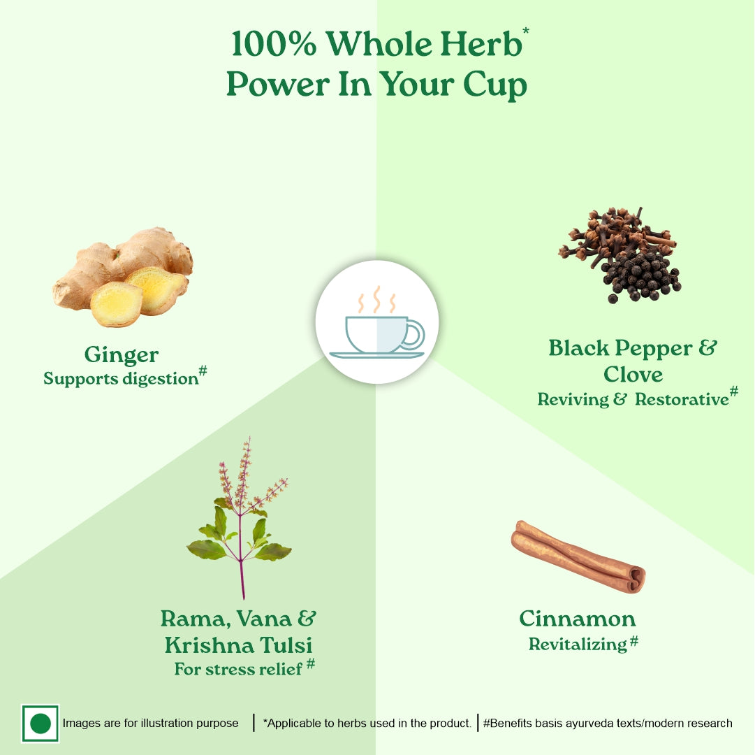 A delicate blend of freshly ground spices (masalas), premium Assam Tea & Tulsi, this cup of tea will transport you! The sweet and spicy notes with a comforting aroma make it an exotic, unmistakable experience. This premium tea is, exceptionally calming, and the perfect pick-me-up.